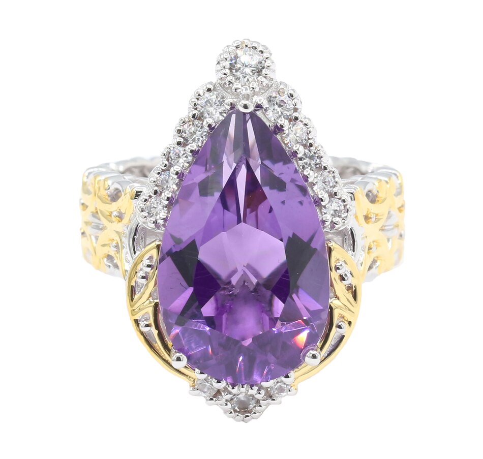 • (1) 18mm x 11mm pear shape prong set amethyst (7.30 av. ctw)