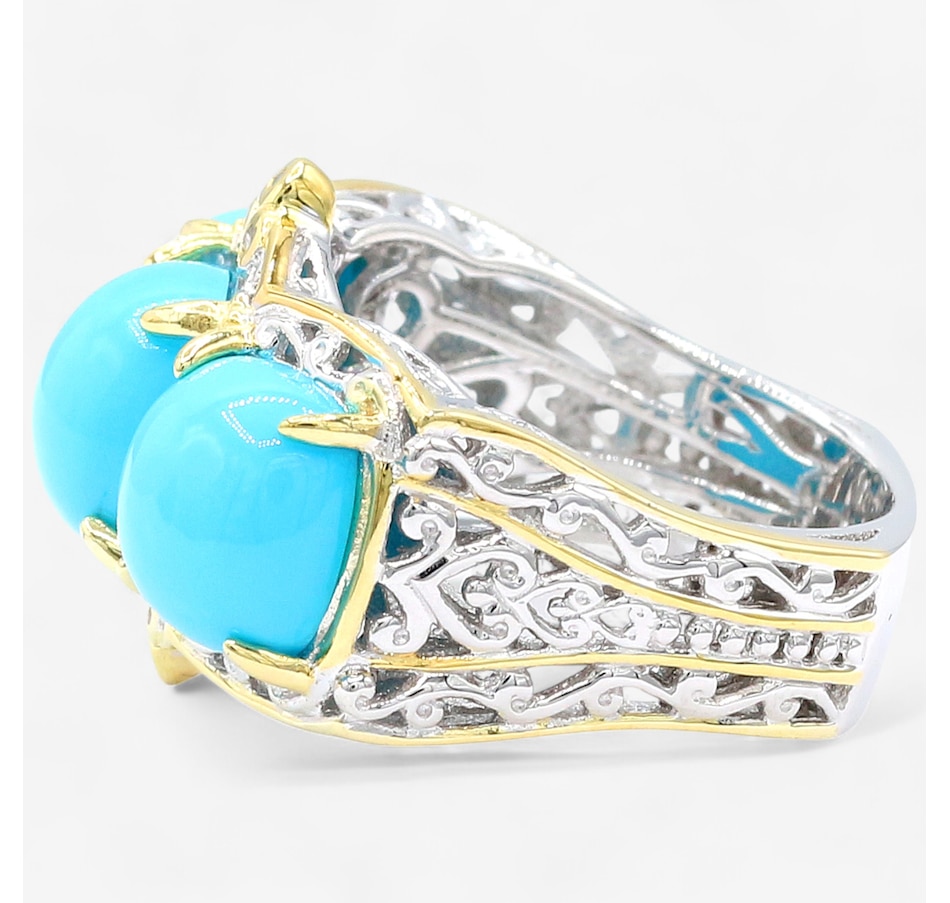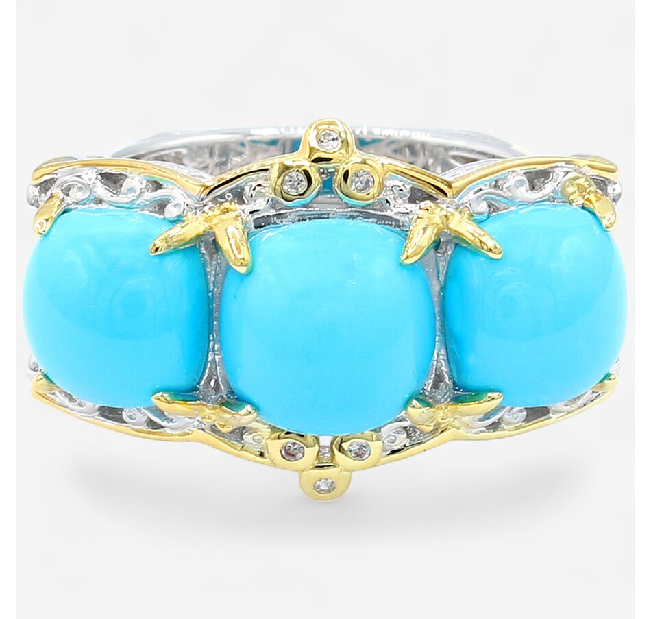 Palladium Silver Sleeping Beauty Turquoise & White Zircon Ring
