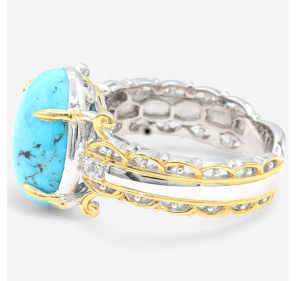Palladium Silver Spider Turquoise And White Topaz Ring