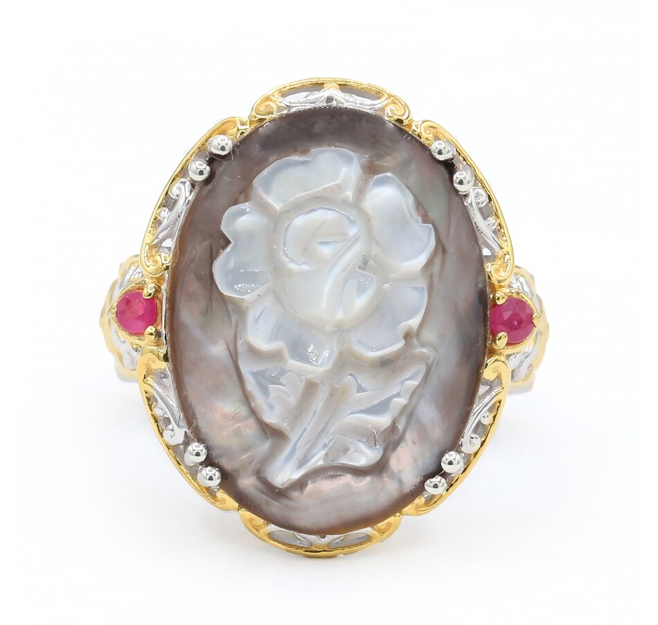 • (1) 20mm x 15mm oval Tahitian shell-carved flower