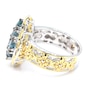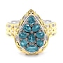 • Cluster Ring: (1) 5x3mm oval prong set & faceted teal kyanite (0.34 av. ctw), (8) 4x3mm oval prong set & faceted teal kyanite (1.84 av. ctw)