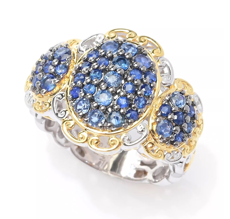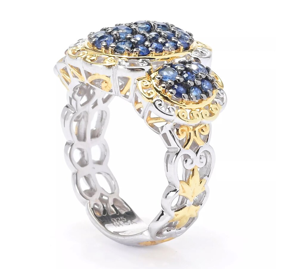 • (13) 2.25mm & (24)1.75mm round shape, prong set & faceted royal blue sapphires (1.63 av.ctw)