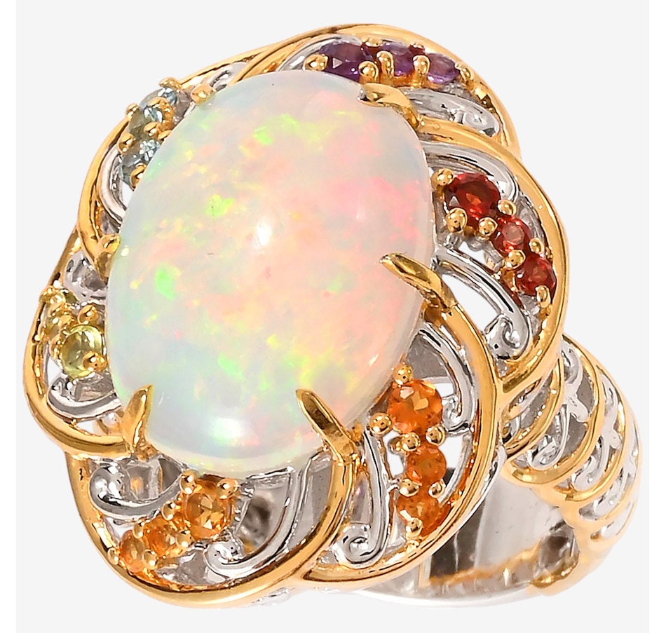 Palladium Silver White Ethiopian Opal & Multi Gemstone Ring