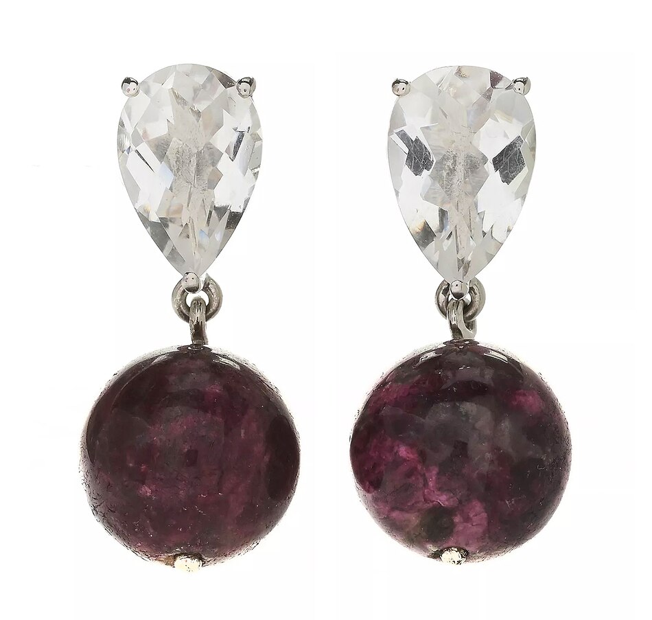 Palladium Silver White Quartz & Tourmaline Bead Earrings