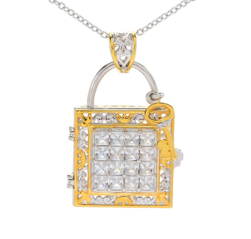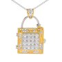 Palladium Silver White Zircon Lock & Key Locket Pendant with Chain