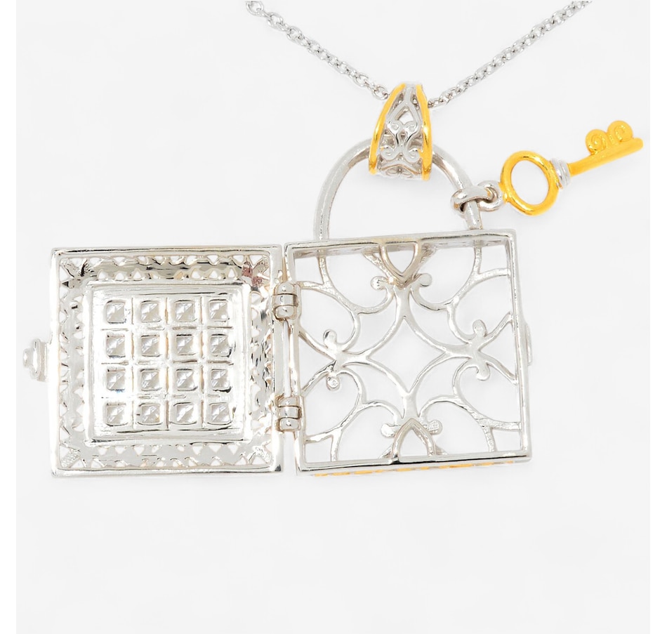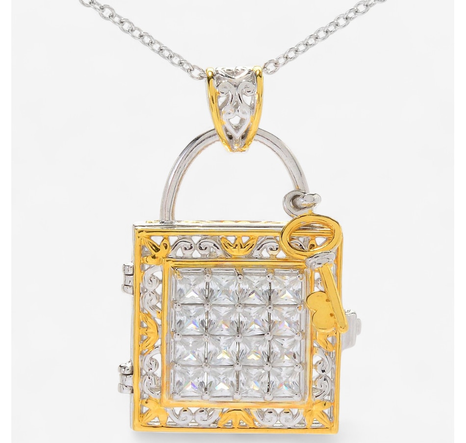 Palladium Silver White Zircon Padlock Locket Pendant With Chain