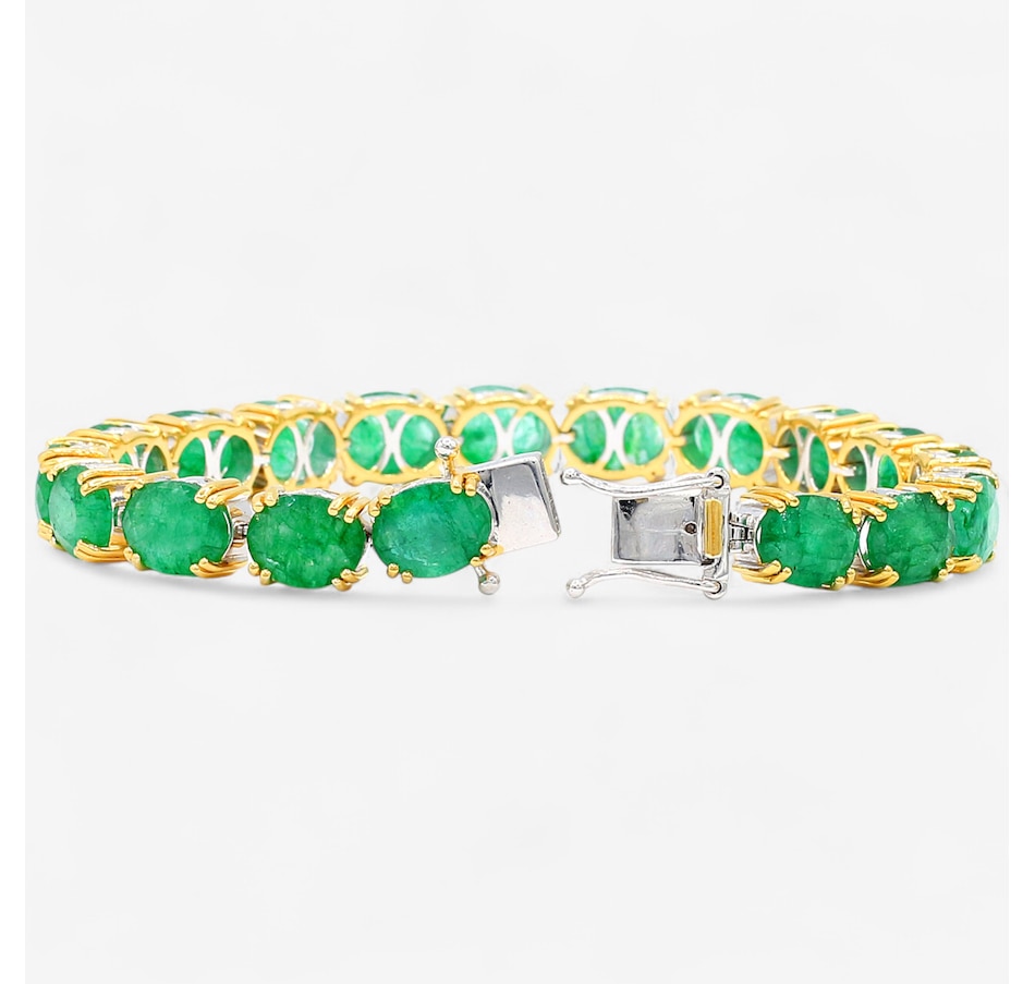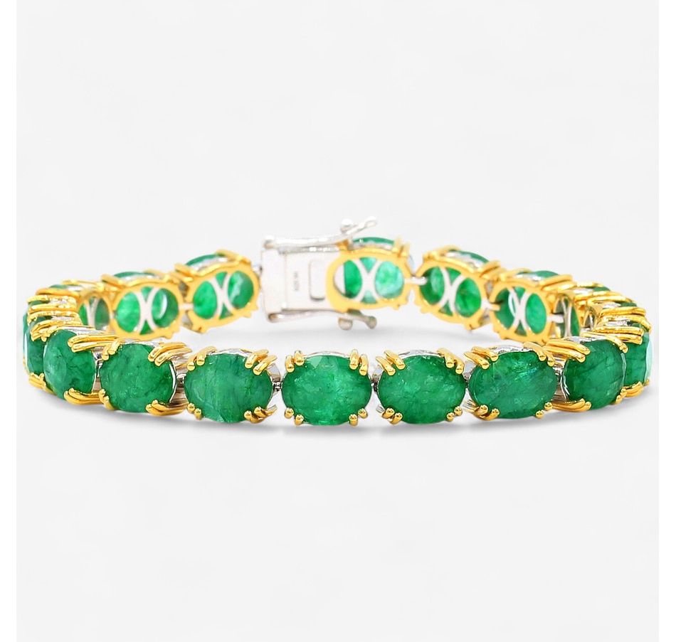 • (18) 9x7mm oval, prong set & faceted Zambian emeralds (33.46 ctw)