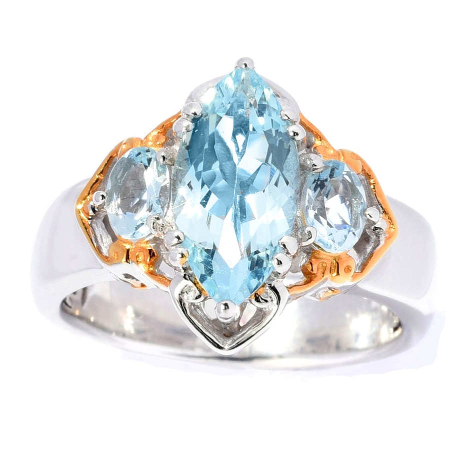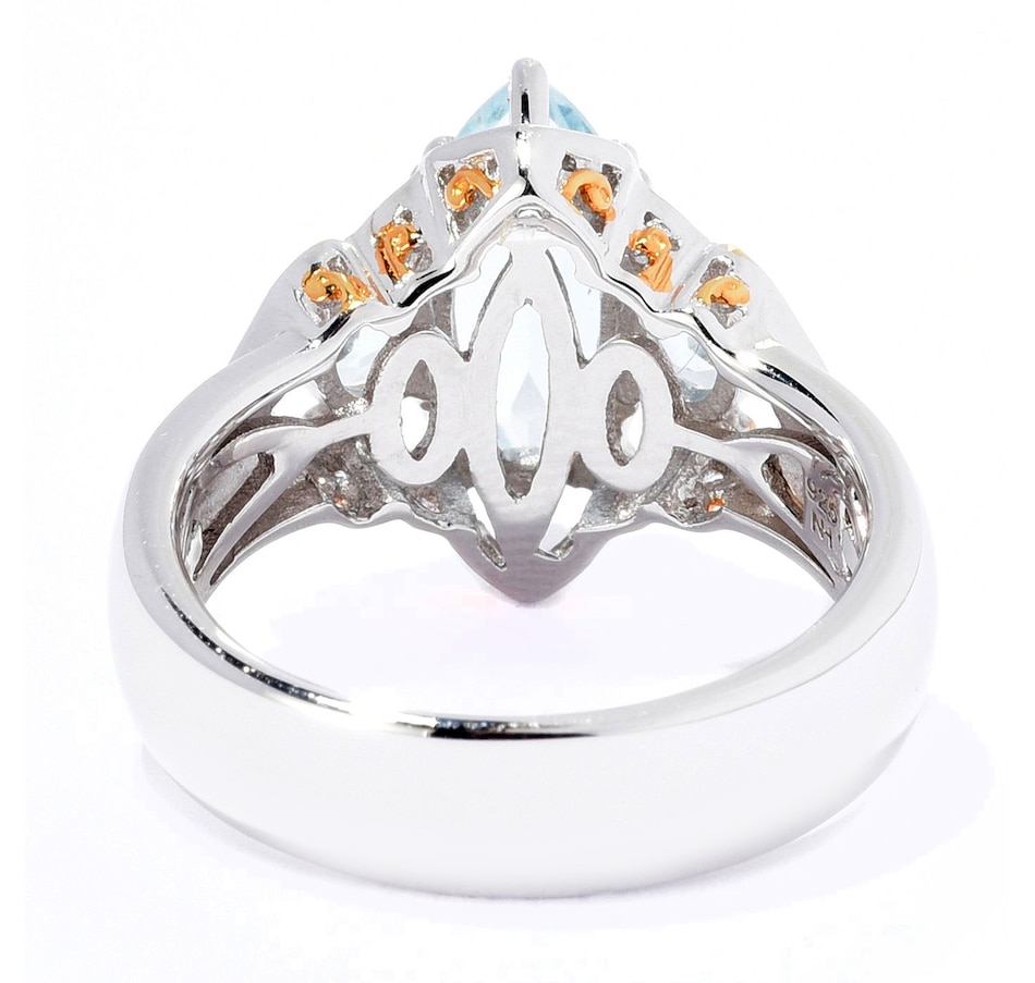 • (1) 12 mm x 6 mm marquise-shaped, prong-set and faceted aquamarine (1.00 av. ctw)