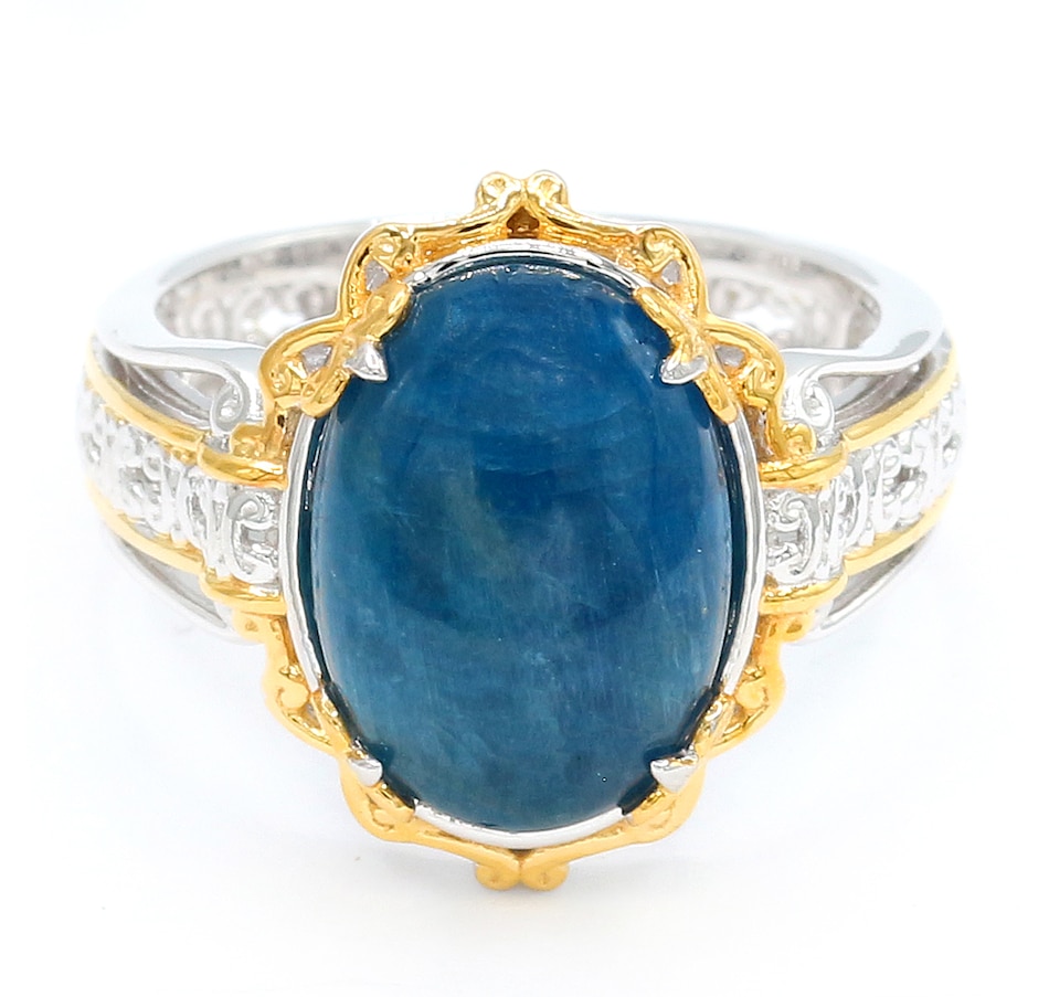 • (1) 14mm x 10mm oval shape, prong set blue apatite (6.28 av. ctw)