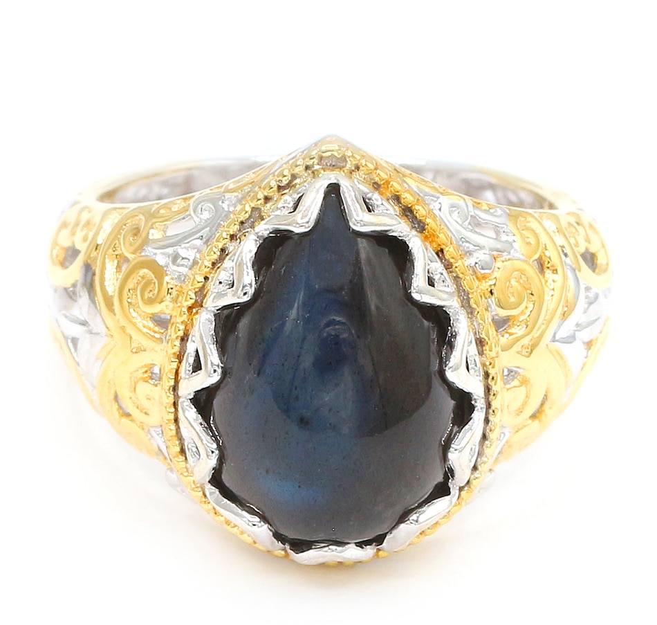 • (1) 14mm x 10mm pear shape, prong set blue labradorite (5.30 av. ctw)