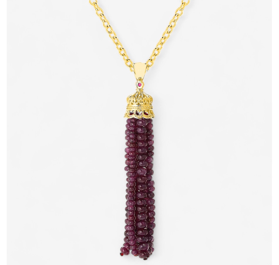 Centre every look in beautiful style wearing this Burmese ruby bead tassel necklace from Gems en Vogue.