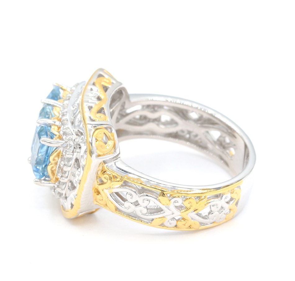 Palladium Silver Tanzania Aquamarine and White Zircon Ring