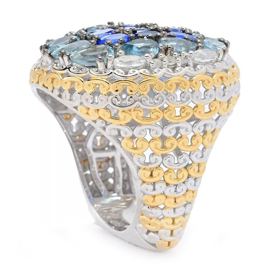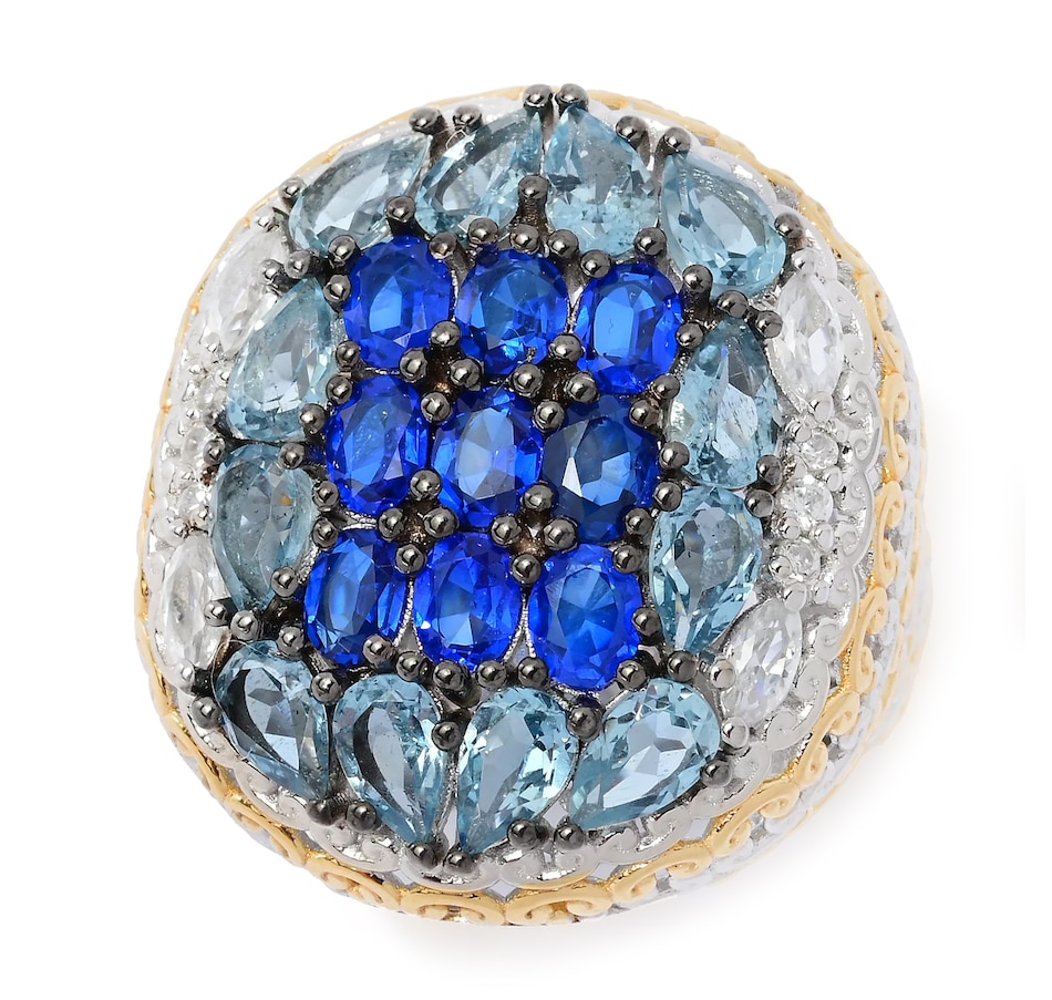 Accessorize your look in dazzling style when you wear this beautiful cobalt blue spinel Tanzanian aquamarine and white zircon ring from Gems en Vogue.