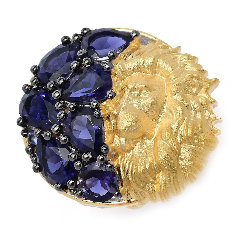 Accessorize your look in dazzling style when you wear this beautiful iolite lion ring from Gems en Vogue.