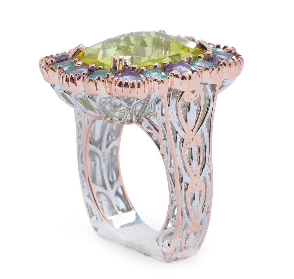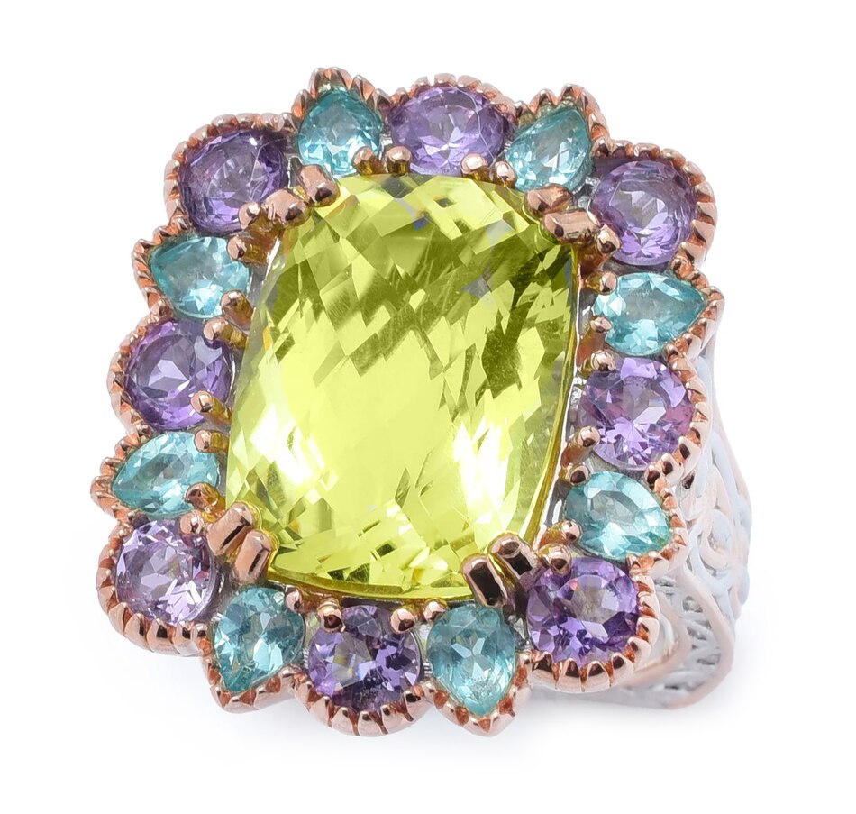 Palladium Silver Ouro Verde, Dauphin Apatite and Brazilian Amethyst Ring