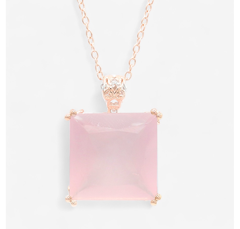 Centre every look in beautiful style wearing this rose quartz pendant with chain from Gems en Vogue.