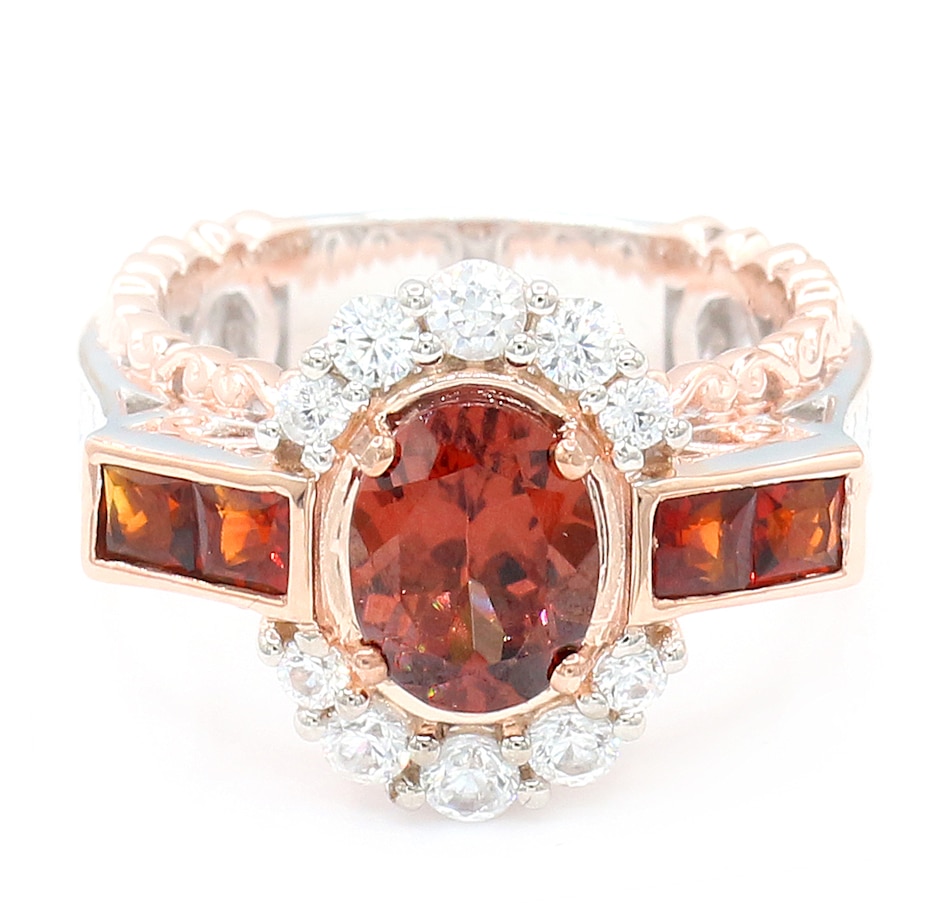 • (1) 9mm x 7mm oval shape, prong set and faceted rose zircon (3.00 av. ctw)