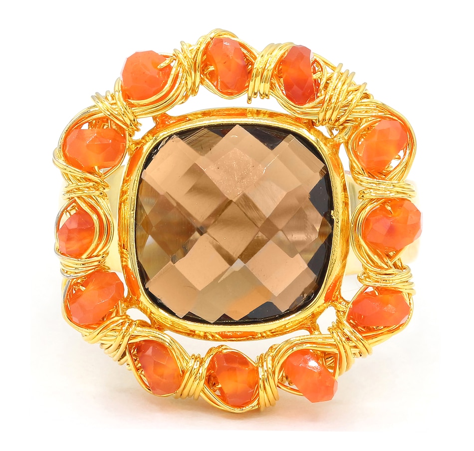 • (1) 12mm cushion checktop cut, bezel set smoky quartz (5.80 av. ctw)