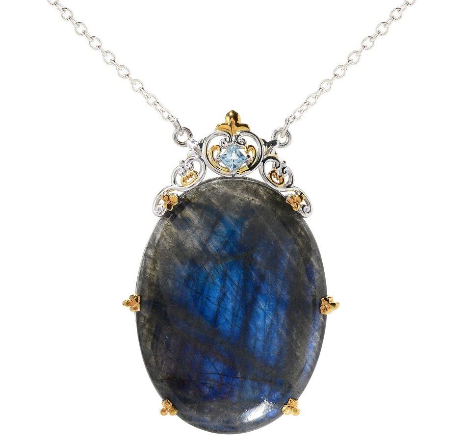 Palladium Silver Spectrolite and Sky Blue Topaz Pendant with Chain
