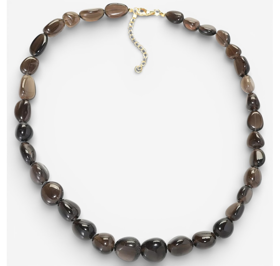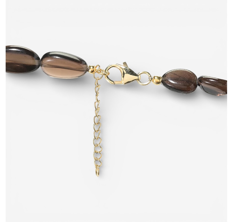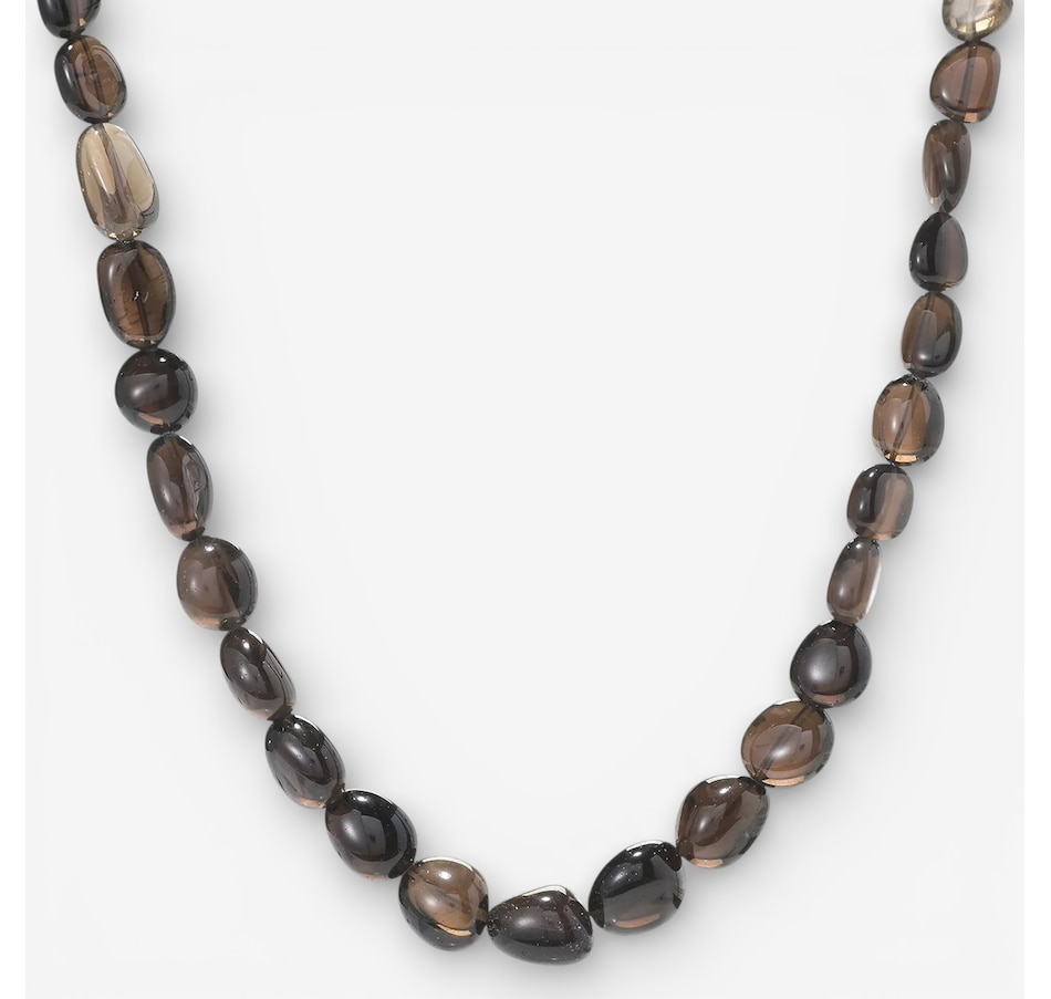 Wrap yourself in the warm, earthy sophistication of this tumbled bead smoky quartz necklace from Gems en Vogue, a striking, gemstone‑rich piece that brings instant depth and elegance to any look. Each of the 38 generously sized beads carries its own natural personality and glow. Crafted with Palladium Silver and finished with luxurious 24K yellow gold plate accents, this necklace delivers both substance and refinement. The 18" length, complemented by a 2" extender and secure lobster claw clasp, allows for a comfortable, customizable fit that moves effortlessly from day to evening.