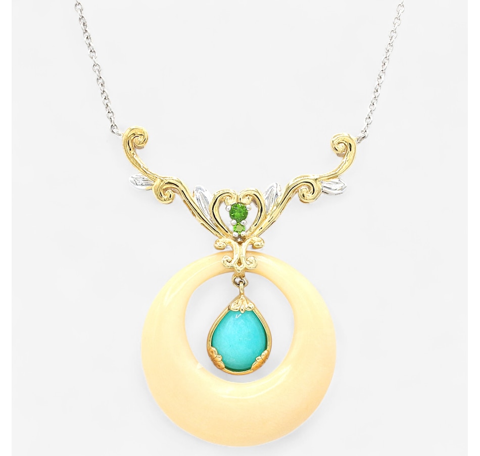 Centre every look in beautiful style wearing this stunning vegetable ivory , amazonite and chrome diopside necklace from Gems en Vogue.