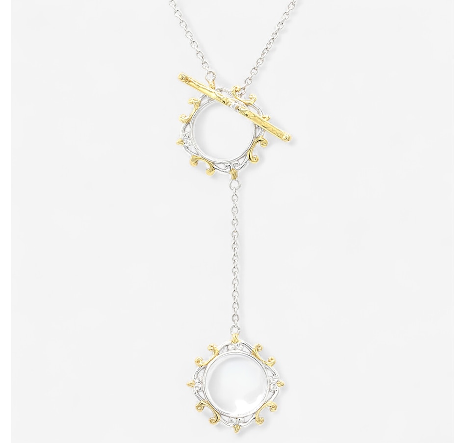 • Palladium silver; 24K yellow gold plate and white rhodium accents