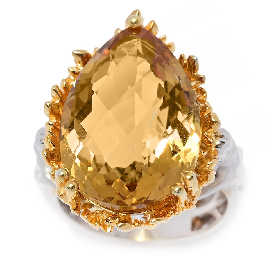 • (1) 18 mm x 13 mm pear checktop, prong-set Zambian citrine (10.00 av. ctw)