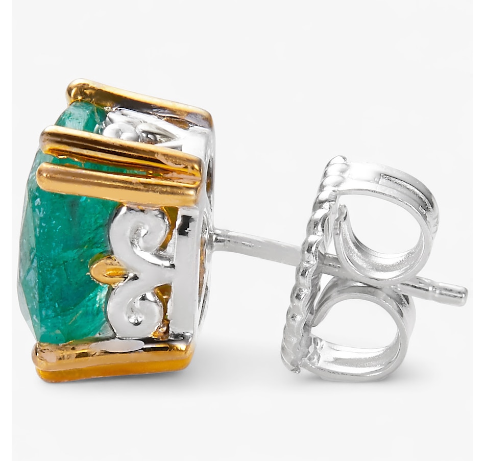 • (2) 9mm x 9mm octagon shape, prong set Zambian emeralds (7.00 av. ctw)