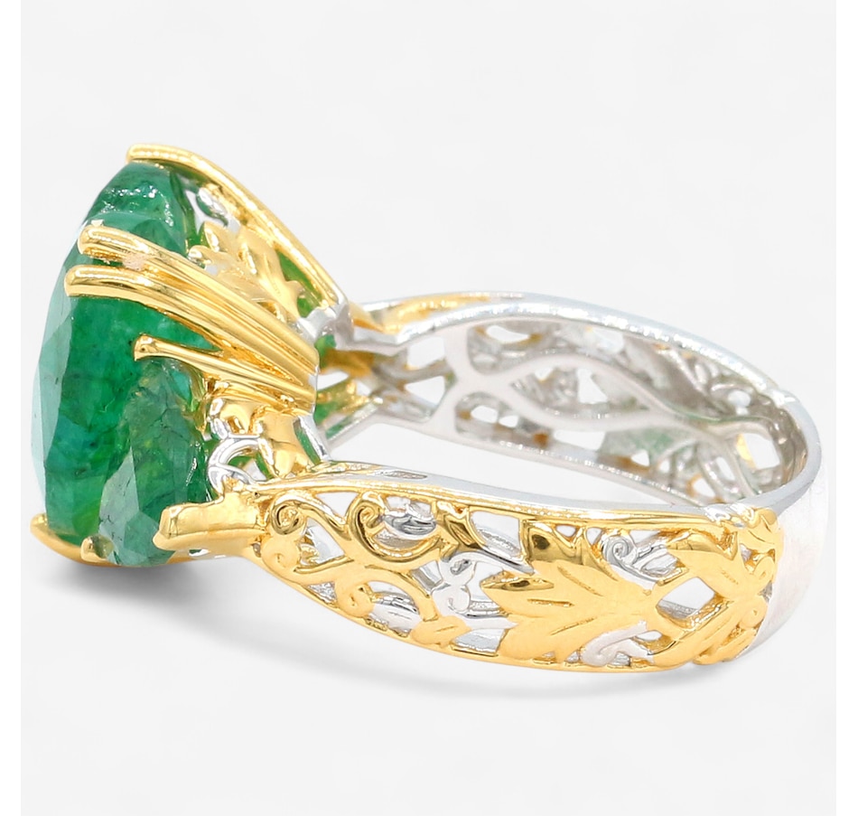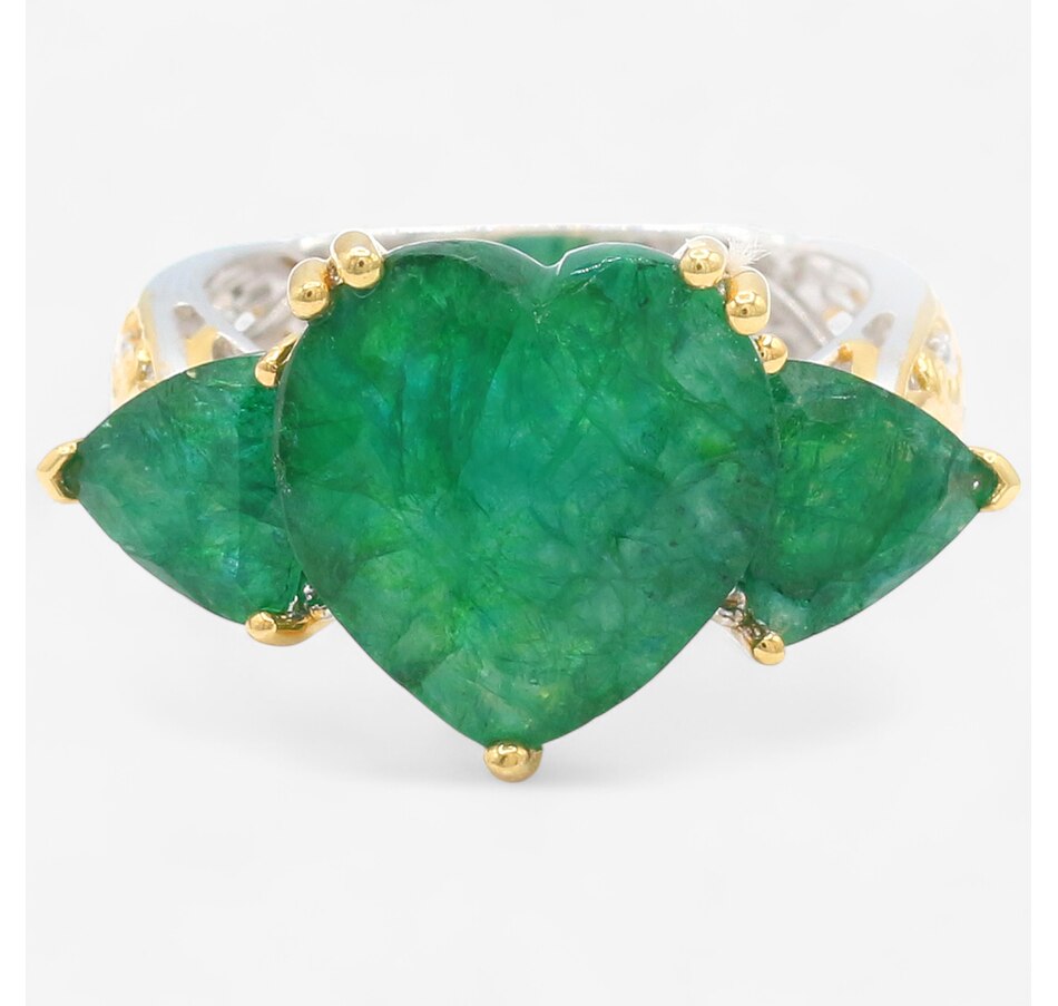 • (1) 13 mm heart-shaped, prong-set Zambian emerald (7.50 av. ctw)
