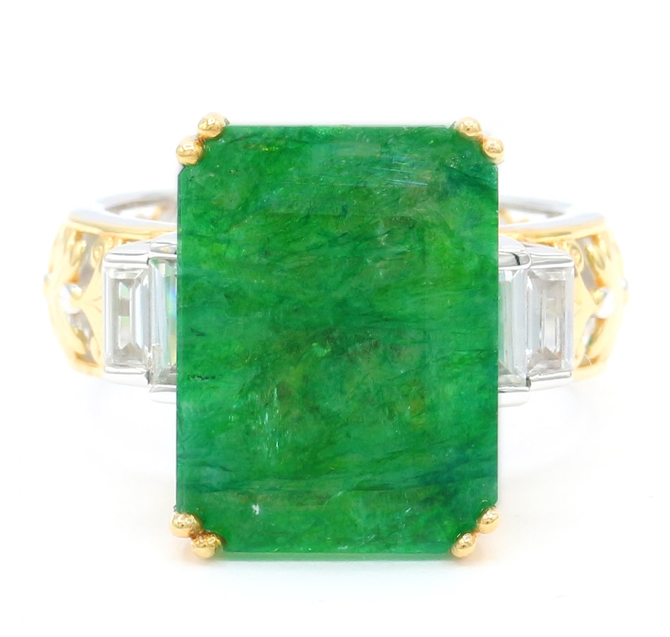 • (1) 16 mm x 12 mm emerald-cut, prong-set Zambian emerald (10.00 av. ctw)