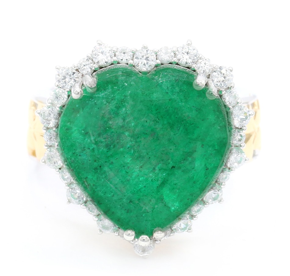 • (1) 15 mm heart-shaped, prong-set Zambian emerald (10.00 av. ctw)