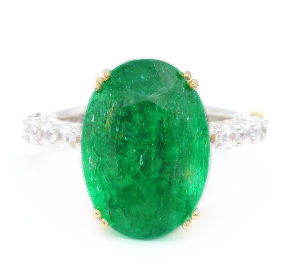 • (1) 17 mm x 12 mm oval, prong-set Zambian emerald (10.00 av. ctw)