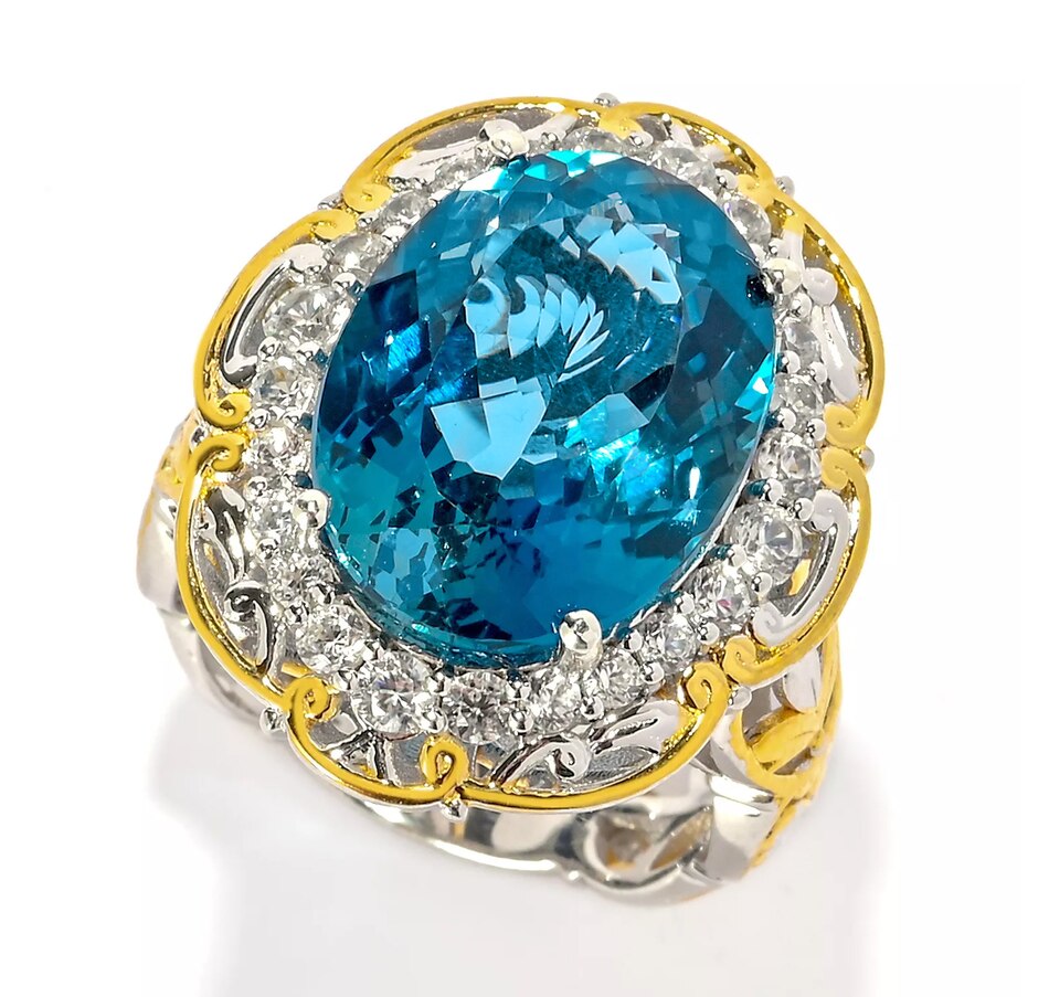 Silver Palladium London Blue Topaz and White Zircon Ring