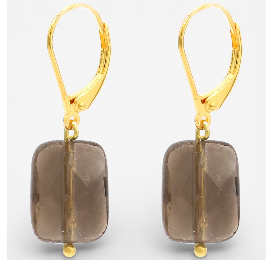 • (2) 13mm x 10mm cushion bead faceted smokey quartz (3.00 av. ctw)