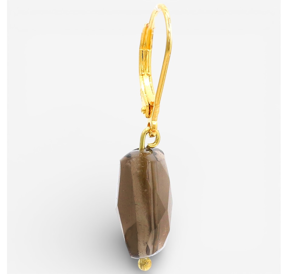 Turn heads with the sultry elegance of these smokey quartz drop earrings from Gems en Vogue. Each earring features a bold cushion-cut smokey quartz, expertly faceted to catch the light with every move. Crafted in durable palladium silver and finished with luxurious 24K yellow gold plating, these earrings exude timeless glamour with a modern twist. Secured with classic posts and butterfly backs, they offer both comfort and confidence. Perfect for elevating any look, these earrings are your go-to for effortless style.