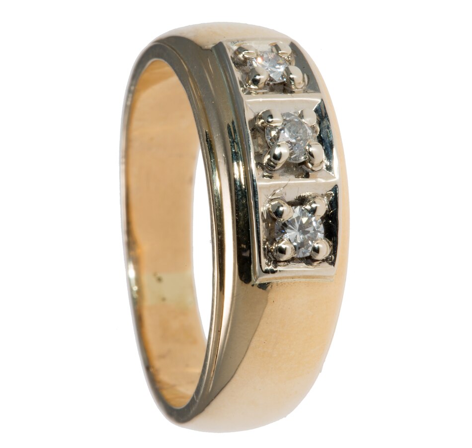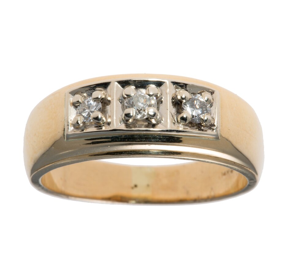 • Gentleman's 14KT Yellow and White Gold 3-Stone Across Ring with an Old European Cut Diamond
