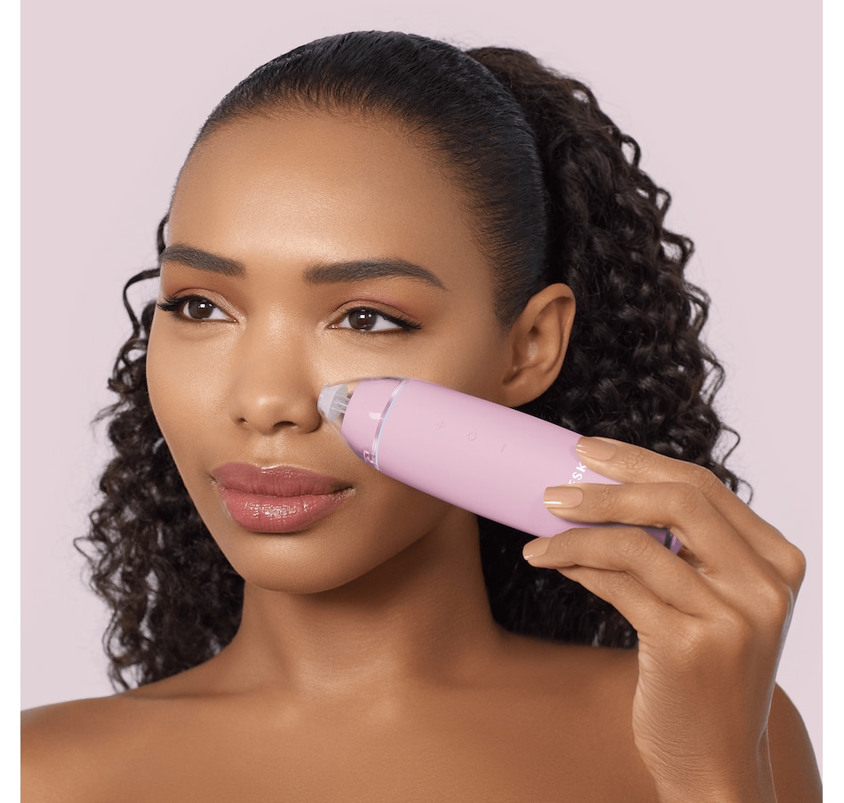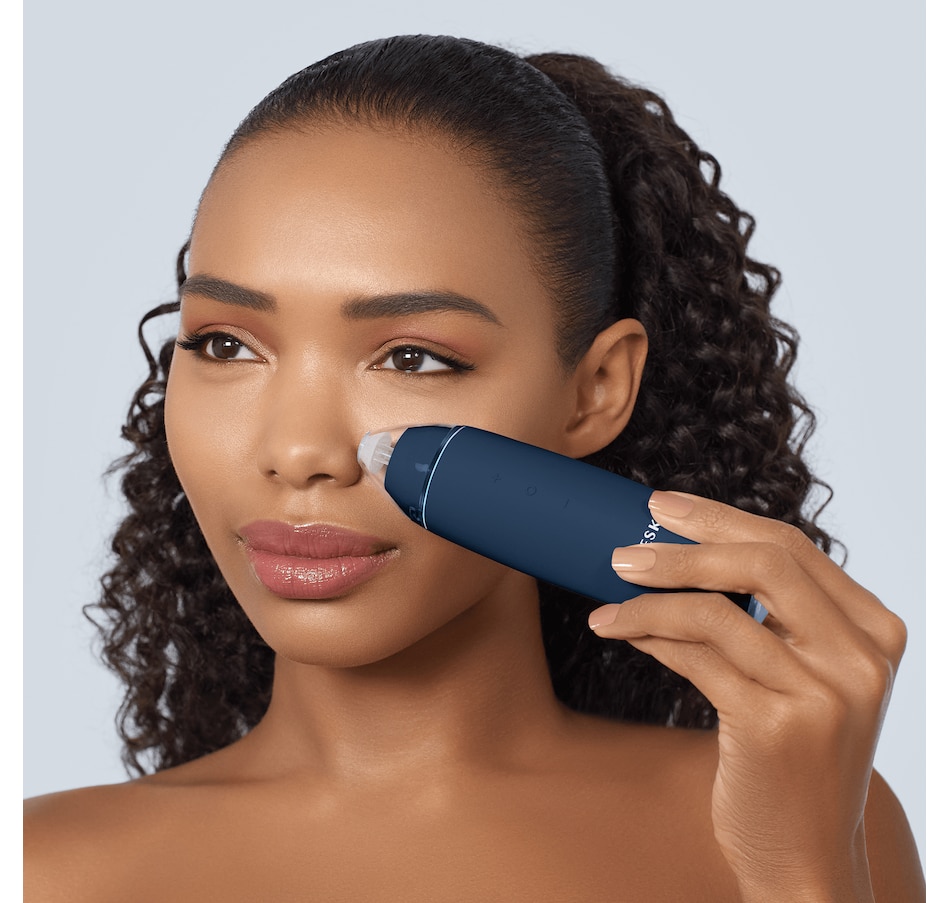 This is the AirPulse Suction Deep Pore Cleansing device, which gently extracts, through directed air pulses, residue from makeup, oils, dead skin, and, of course, blackheads and whiteheads.