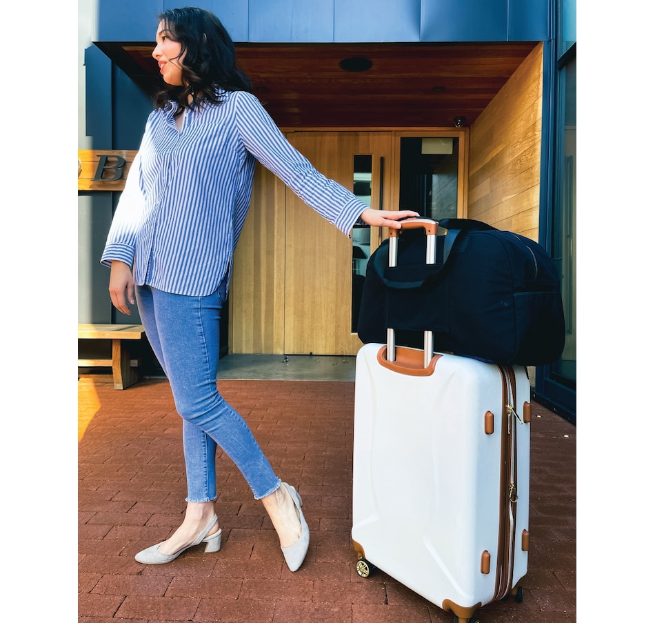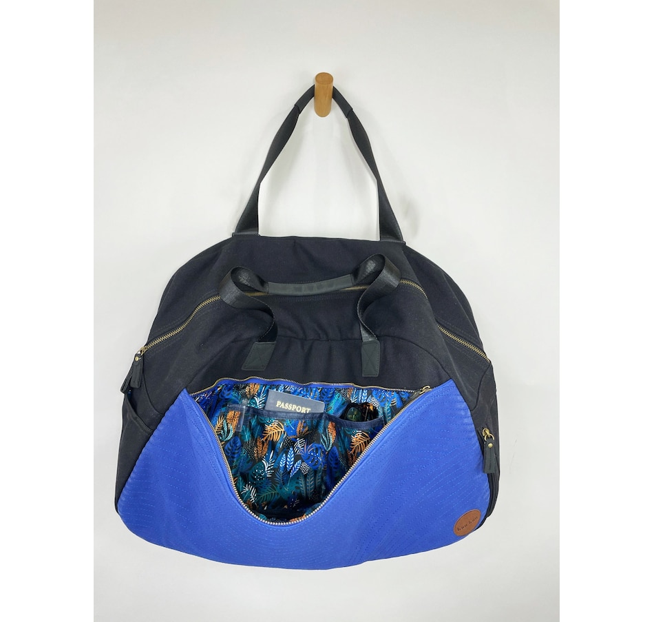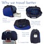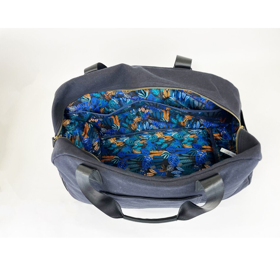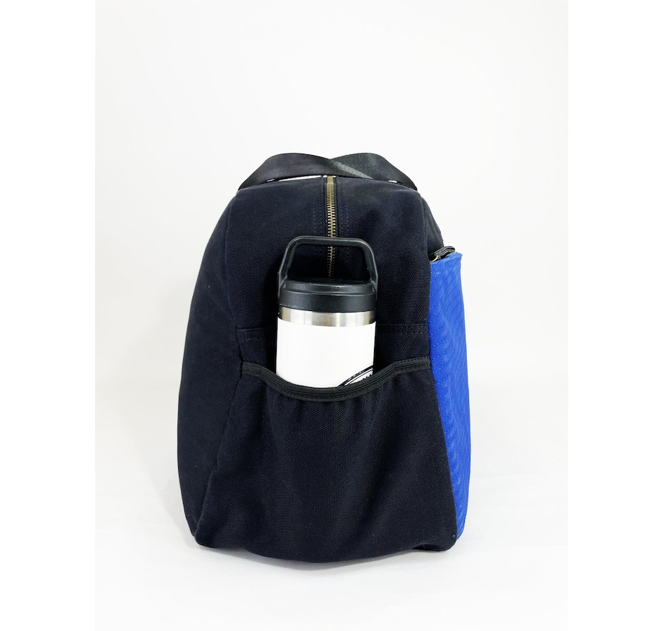 Your browser does not support our video. Introducing the Getaway Duffel Bag - Eternal Optimist Cobalt Blue, merging style, practicality, and ease for all travel. Crafted with California-inspired flair, it offers streamlined compartments, a shoe/laundry section, cute interior print, water bottle holder, and a luggage sleeve. Compact for overhead bins, machine washable. Ideal for any trip.Why You'll Adore It:With its innovative design, this canvas duffel bag streamlines your travel experience. Its carefully crafted compartments keep you organized on the go, including a spacious side section for shoes or laundry, a water bottle holder, and multiple interior pockets. It also features a luggage sleeve that easily attaches to most rolling luggage, and its compact size fits neatly in the overhead bin of most major airlines. The Getaway Duffel is also machine washable for easy maintenance. Ideal for weekend trips, extended vacations, or even just a day at the gym.Efficient Organization: Say goodbye to clutter and chaos. Fabric & Care:100% Cotton Canvas (Exterior)100% Faux Vegan Suede (Exterior)100% Polyester (Interior)Eternal Optimist Blue (Color)Machine wash cold, tumble dry on low heat.Size:21"W x 8"D x 13"H33 Liters2 lbsGive.One.Back™ program.