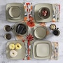 Gibson Elite Soho Lounge 16-Piece Stoneware Dinnerware Set (tan and white)