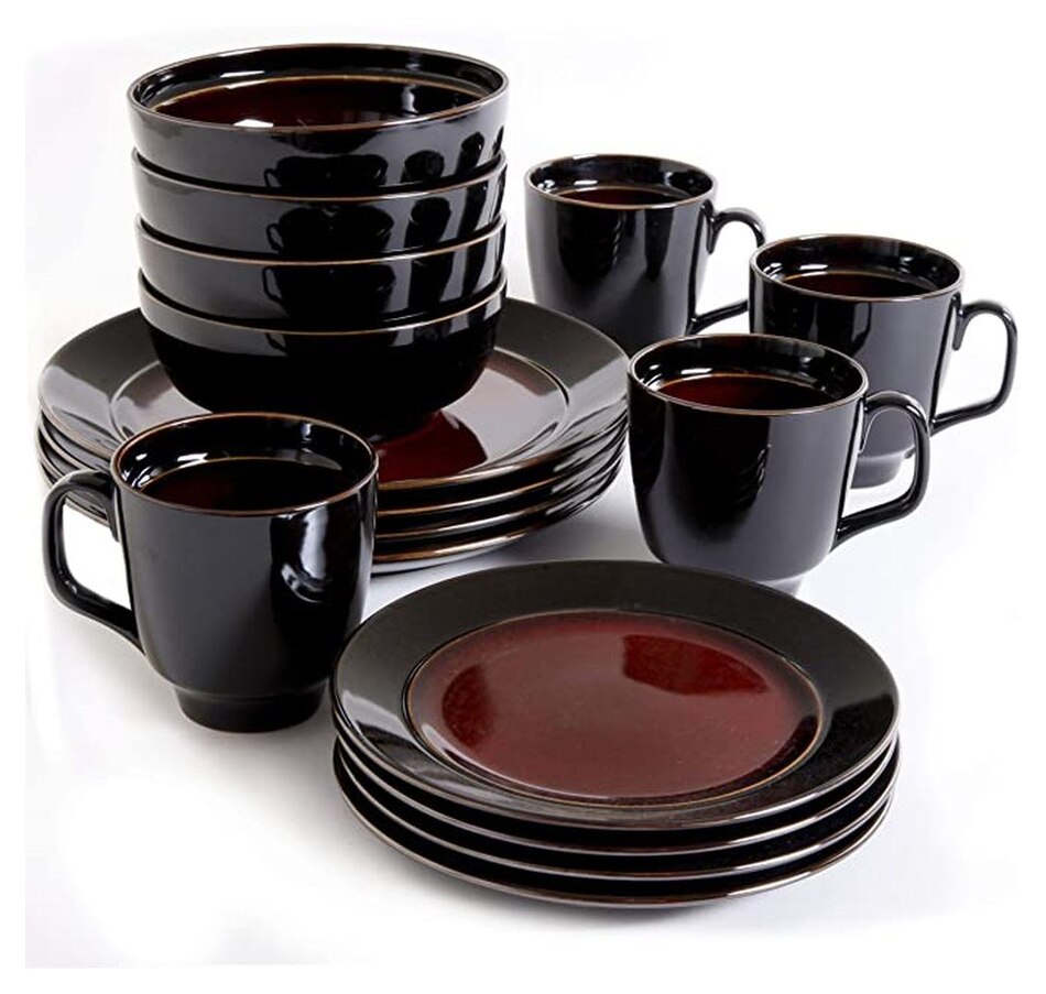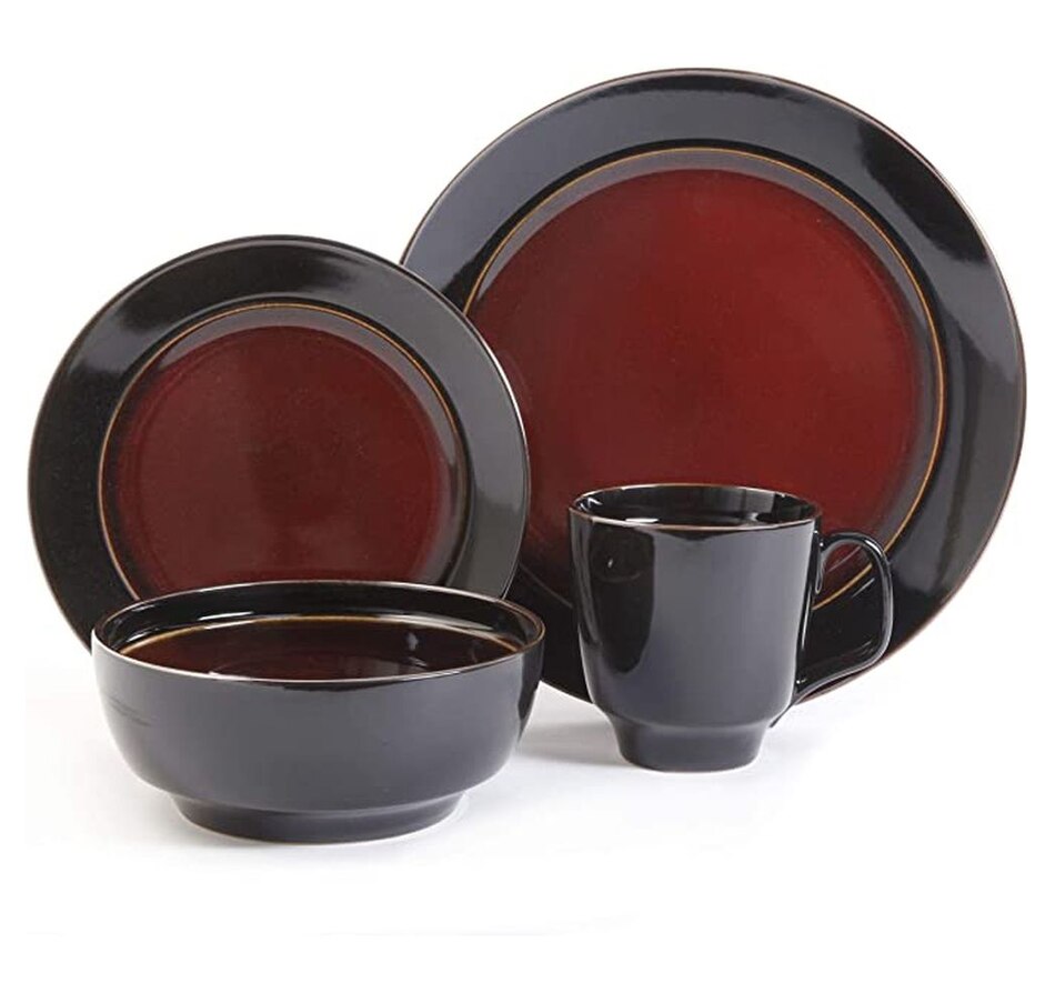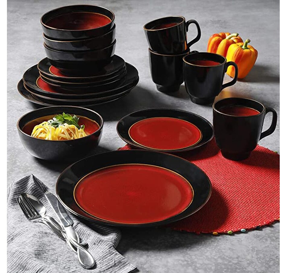 Gibson Home Bella Galleria 16-Piece Dinnerware Set (Red/Black, Stoneware)