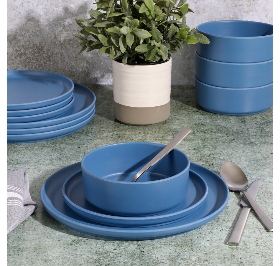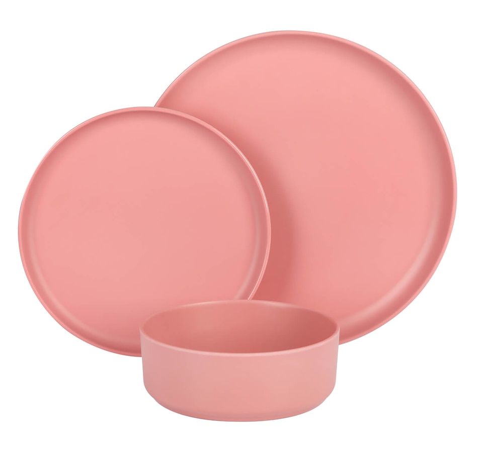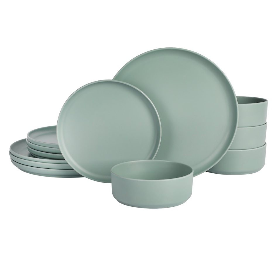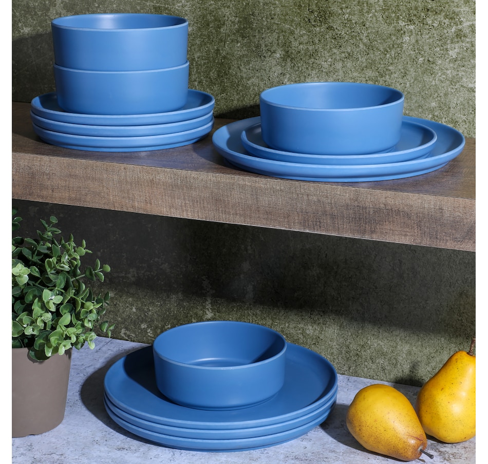 Durable, stackable, stylish, versatile, and functional, this Gibson Home Canyon Crest 12 piece melamine dinnerware set gets the job done. It's made of a durable and unbreakable melamine material that is perfect for everyday use, outdoor barbeques, camping, or anything else on your mealtime schedule.