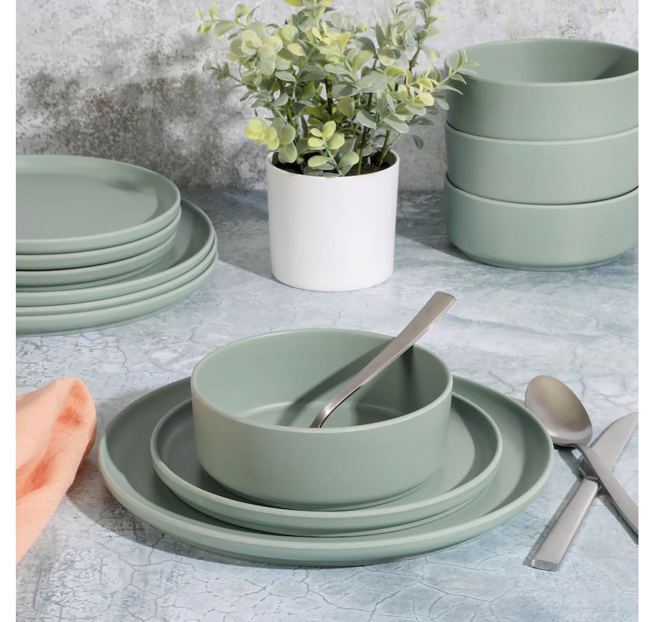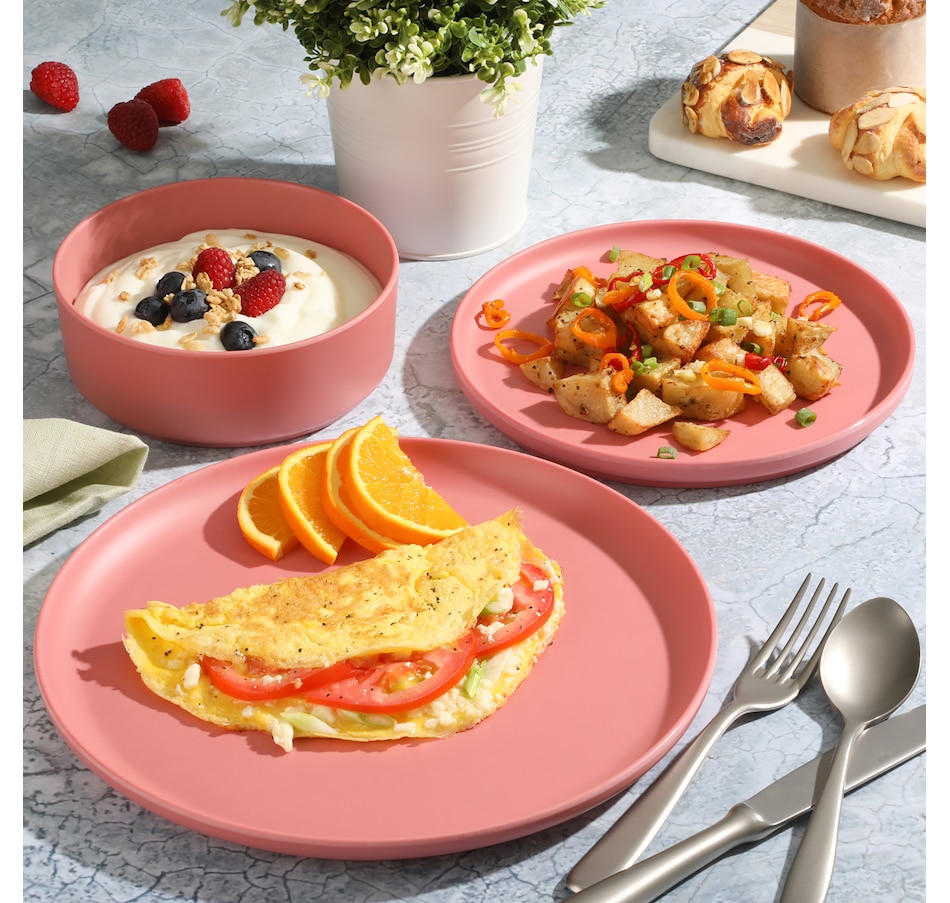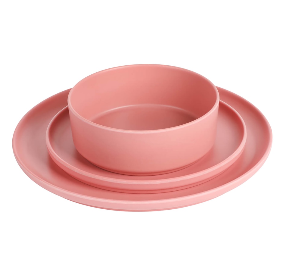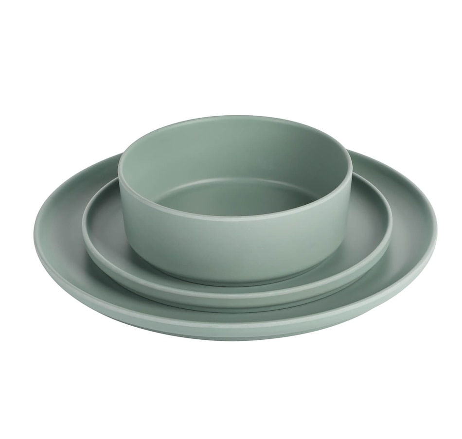 Durable, stackable, stylish, versatile, and functional, this Gibson Home Canyon Crest 12 piece melamine dinnerware set gets the job done. It's made of a durable and unbreakable melamine material that is perfect for everyday use, outdoor barbeques, camping, or anything else on your mealtime schedule.