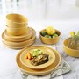 Elevate your dining table and the special moments you spend there with the Gibson Home Everyday Essential 12-piece dinnerware set. Made from durable stoneware and finished in a modern matte glaze, this dish set brings a sleek and sophisticated feel to any dining table. The rich yellow colour accented with raw rim details will make your meals look cookbook-ready, and straight-sided shapes provide a contemporary twist to this classic dinnerware collection. Perfect for everyday use or for special occasions, this stylish Gibson dinnerware lends itself well to mix-and-match decor, creating opportunities to layer into eye-catching spreads on any table. Dishwasher and microwave safe for extra convenience and easy cleanup, these plates and bowls will add function and fashion to your kitchen and dining room. This set includes a place setting for four people. This versatile plate set brings it all together to set the stage for meaningful meals with family and friends.