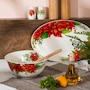 Start holiday celebrations that form traditions and memories to be cherished for a lifetime. The Magic Poinsettia four-piece fine ceramic serving and accessories set from Gibson Home is a collection of elegant serveware and tabletop accessories for beautiful, elevated place settings. Perfect for holiday dinner parties or everyday celebrations, this set is crafted from fine ceramic with a glossy finish for dependable durability. Festive foliage patterns decorate each piece to set a visual feast and leave lasting impressions. Each platter and bowl offers a generous capacity to hold and serve any culinary centrepiece, from the main course and holiday roasts to salads and desserts. Extend the holiday cheer by using these pieces all year round when dining and entertaining at home.