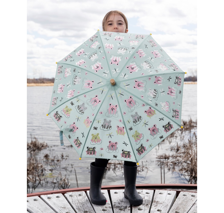 Make rainy days magical with this umbrella featuring an allover print that changes color when it gets wet! Designed with eight sturdy panels and a smooth curved handle, this classy accessory combines fun innovation with everyday functionality. The lightweight polyester canopy provides reliable rain protection while revealing a playful transformation that kids will love watching again and again.