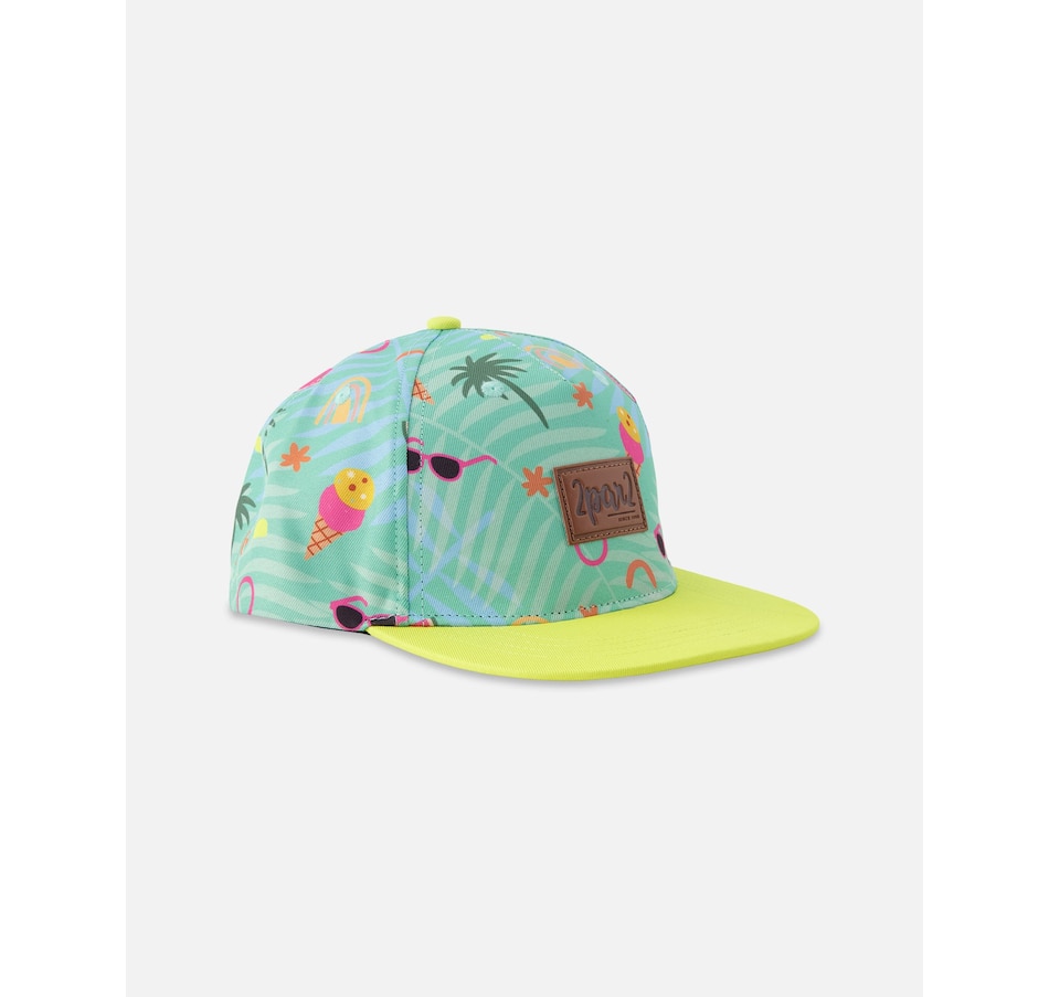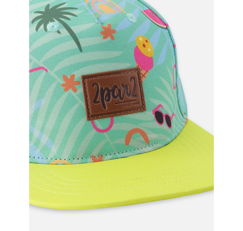 The cap in green with beach print brings sunny personality to little outfits. This hat features a flat yellow brim for a modern look, an allover beach motif, and a front “2par2” logo label that adds a signature touch. Crafted in 100% polyester, it’s lightweight and durable—perfect for park days, beach walks, and every bright adventure in our “The Accessories” collection.