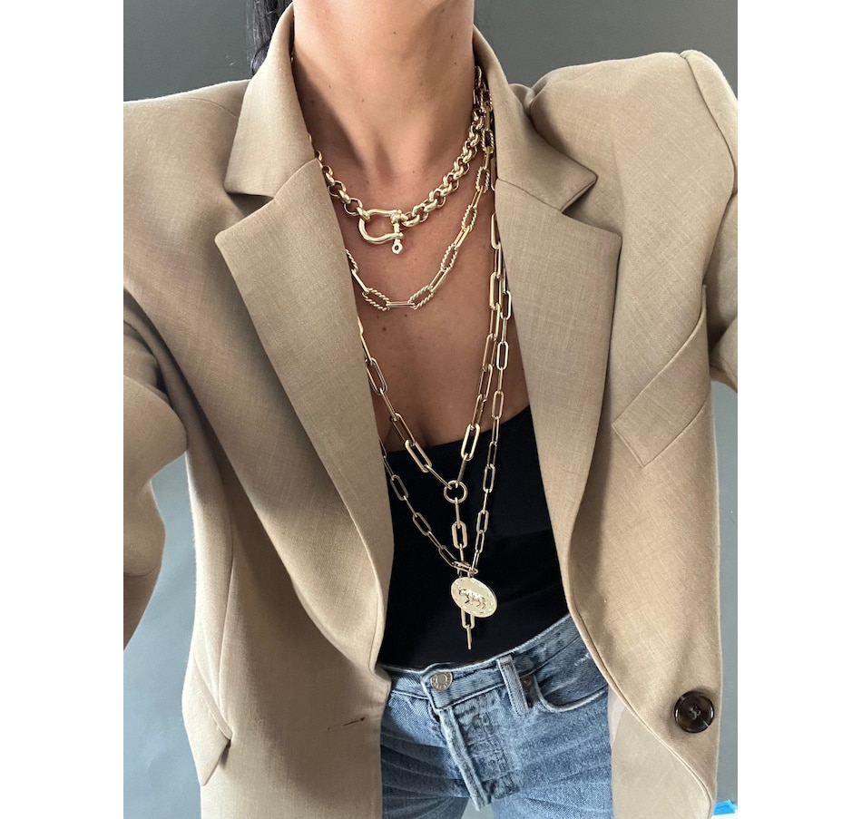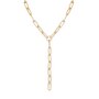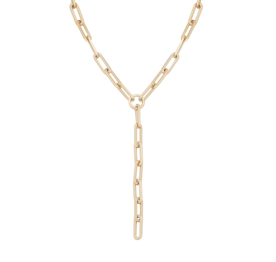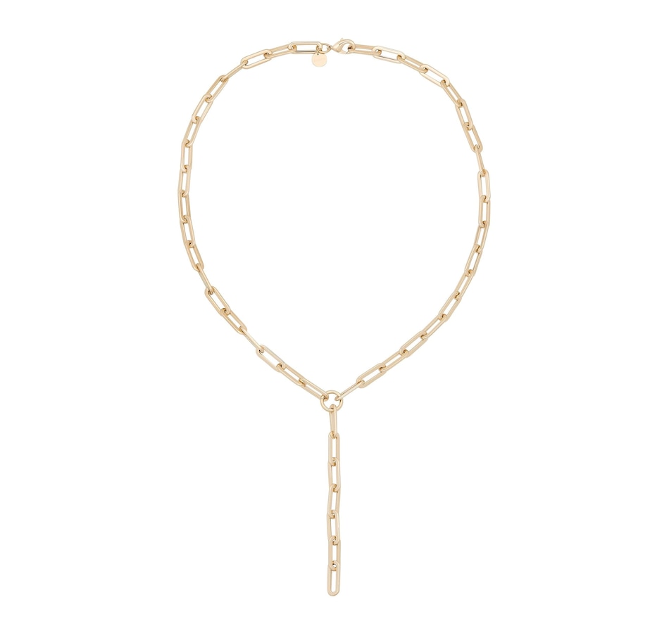 The Gisele Lariat (Y necklace) is an extra large paperclip brass chain, fastened with a with lobster clasp.Material: Recycled BrassPlating: 14K Gold or Rhodium-silverLariat has a clear protective coating to prevent from quick wear and tarnishing.Paperclip link measurements: 27mm long x 8.5mm wideClasp Measures: 19mmAvailable in the following Lengths: 18" with a 5" drop, 24" with a 5" drop, 26" with a 5" drop & 30" with a 5" drop** EDITORS NOTE: Please measure your wrist circumference before choosing a bracelet length.Our jewelry is always handmade from sustainable materials in the USA.
