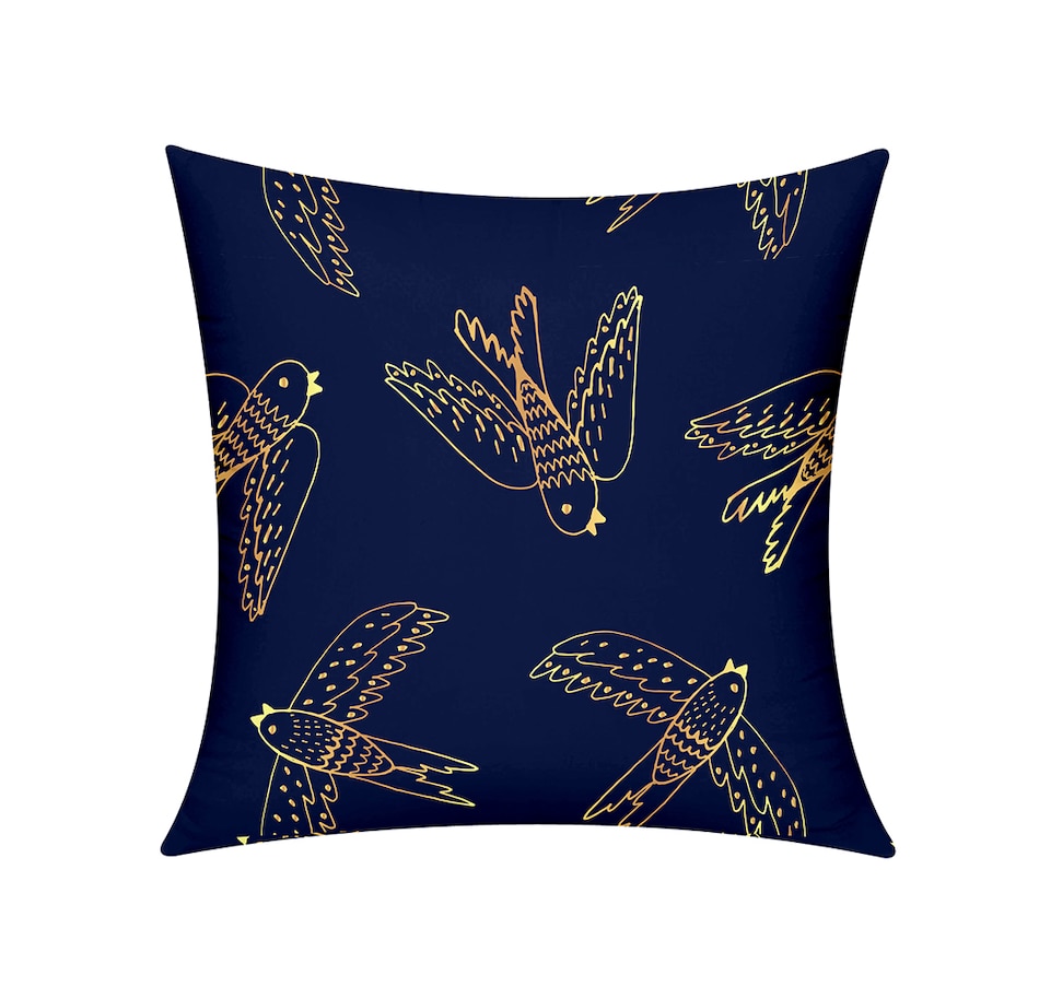 Gold Ornate Birds Solid Navy Back Cushion (18" x 18")