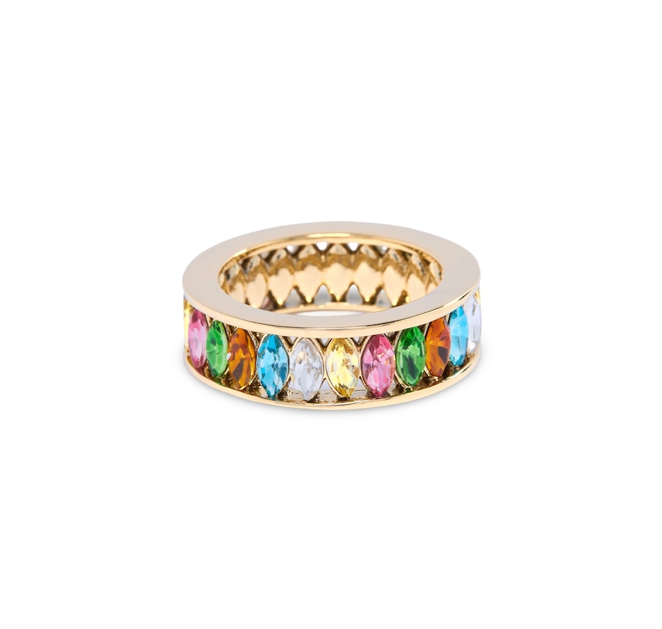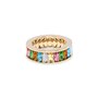 Discover our most coveted piece yet the Multi Stone Colorful Marquise Ring. Radiating with all the hues of the rainbow, this ring is a celebration of vibrant elegance. Each marquise-cut stone is carefully selected to create a stunning kaleidoscope of color that captures attention wherever you go.14K Gold over Brass with Multi Color Stones