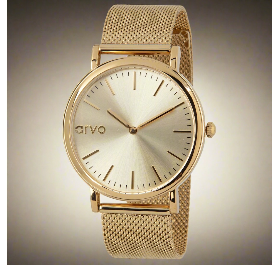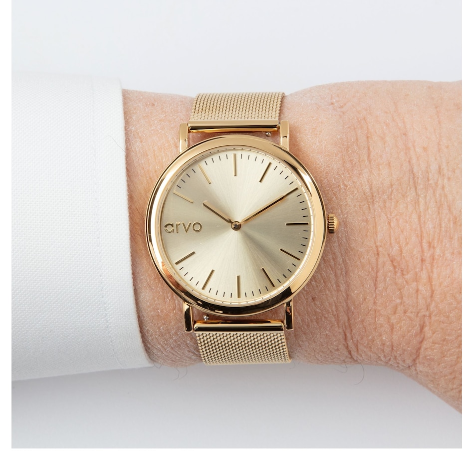 The Time Sawyer is the first watch we ever created, so we designed it to connect you back to when watches for men and women were simple, minimal and classy.The idea for this model was inspired by an old mid-1900's wristwatch we first found at a local pawn shop. After that and through the design process of the Time Sawyer, we came to appreciate the power of simplicity. Because of that, the Time Sawyer remains one of the best-selling watches for men and women. watches for men and women are very versatile. For example, you can also order the Gold Time Sawyer with your choice of the black band or the brown band. Then order another color band to have on hand when you need a different look. The Quick Release function of bands make them easy to switch out in about 2 minutes. Shop Watch Bands!Product Details:Case Diameter: 40 mm / 8.25mm ThicknessCase Material: Alloy / Stainless Steel BackWater Resistance: 3 ATMCase Color: GoldDial Color: GoldMovement: Japan QuartzWatch Band Width: 20mm – Quick Release InterchangeableWatch Band Material: Stainless Steel MeshWatch Band Color: GoldFelt Zippered Storage BagFor men and womenAs always, a portion of all sales of watches for men and women goes to charitable causes. Be good, Do good! To learn more about our charitable giving, visit Gives.